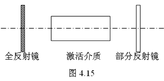 普通的谐振腔由两块相互平行的反射镜构成。其中一块为全反射镜,其反射率在99%以上,另一块为部分反射镜,其反射率约为40%~80%,激活介质置于两块反射镜之间。如图4.15所示。