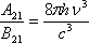 式中h为普朗克常数,ν为辐射频率,c为光速。上式即为爱因斯坦受激辐射理论的重要关系式。该式表明,自发辐射系数与受激辐射系数之比与辐射频率的三次方成正比。表明在低频区受激辐射的概率大于自发辐射概率,而在高频区受激辐射概率小于自发辐射概率。故研制紫外光、x射线及g射线激光器较之红外光区、可见光区的激光器要困难得多。